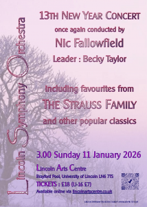 Join us for our New Year concert on Sunday 11th January 3pm at the Lincoln Arts Centre. Please click on the CONCERTS tab for programme details and ticket information.